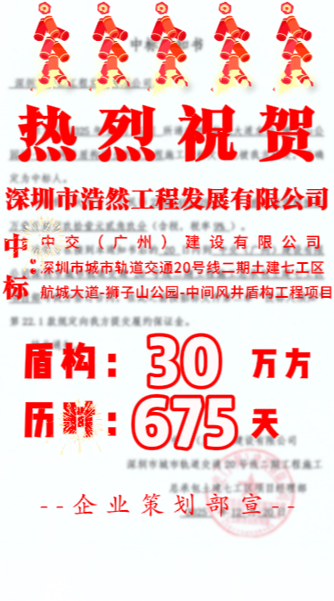 深圳市浩然工程发展有限公司承建中国水利水电第七工程局有限公司深圳地铁15号线土建八工区宝流区间项目竣工