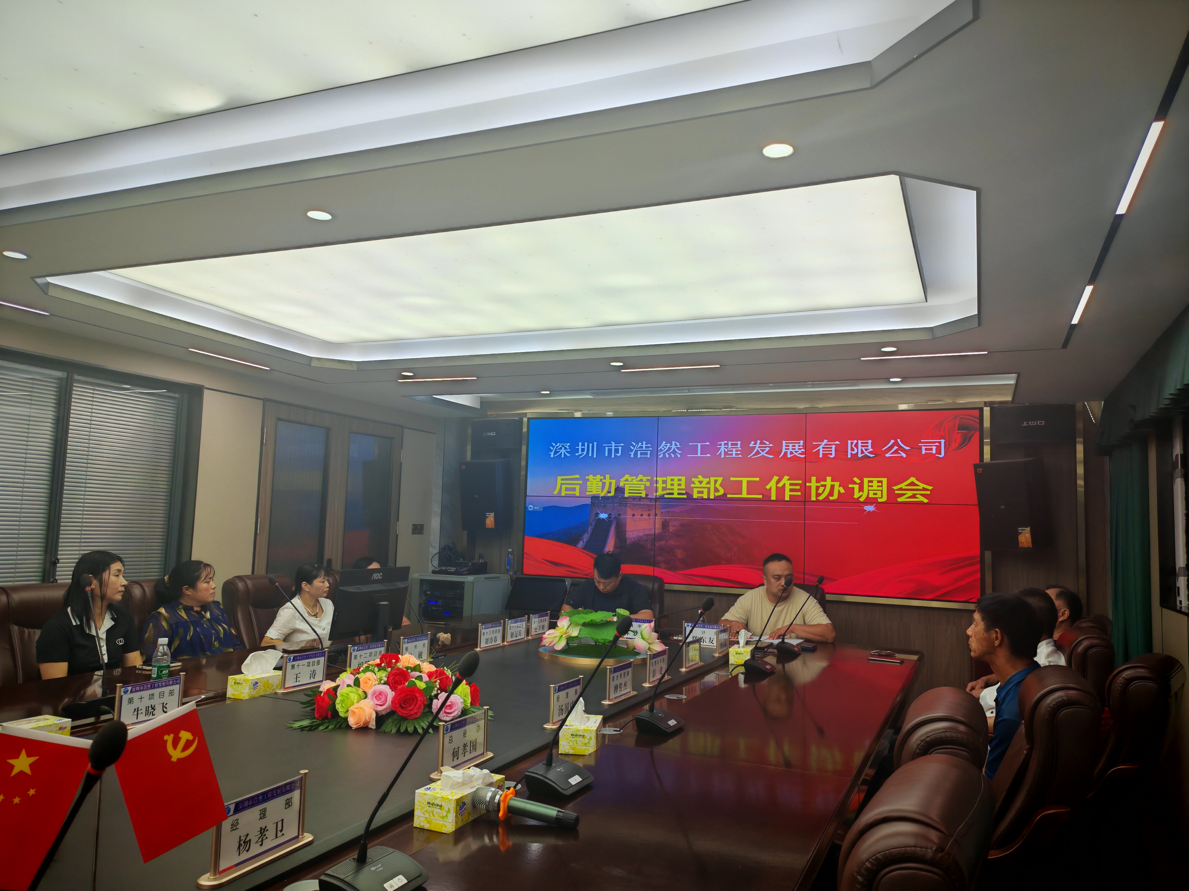 2025年9月28日晚19时30分,深圳市浩然工程发展有限公司基地灯火通明,公司后勤管理部工作协调会议在基地会议室召开。