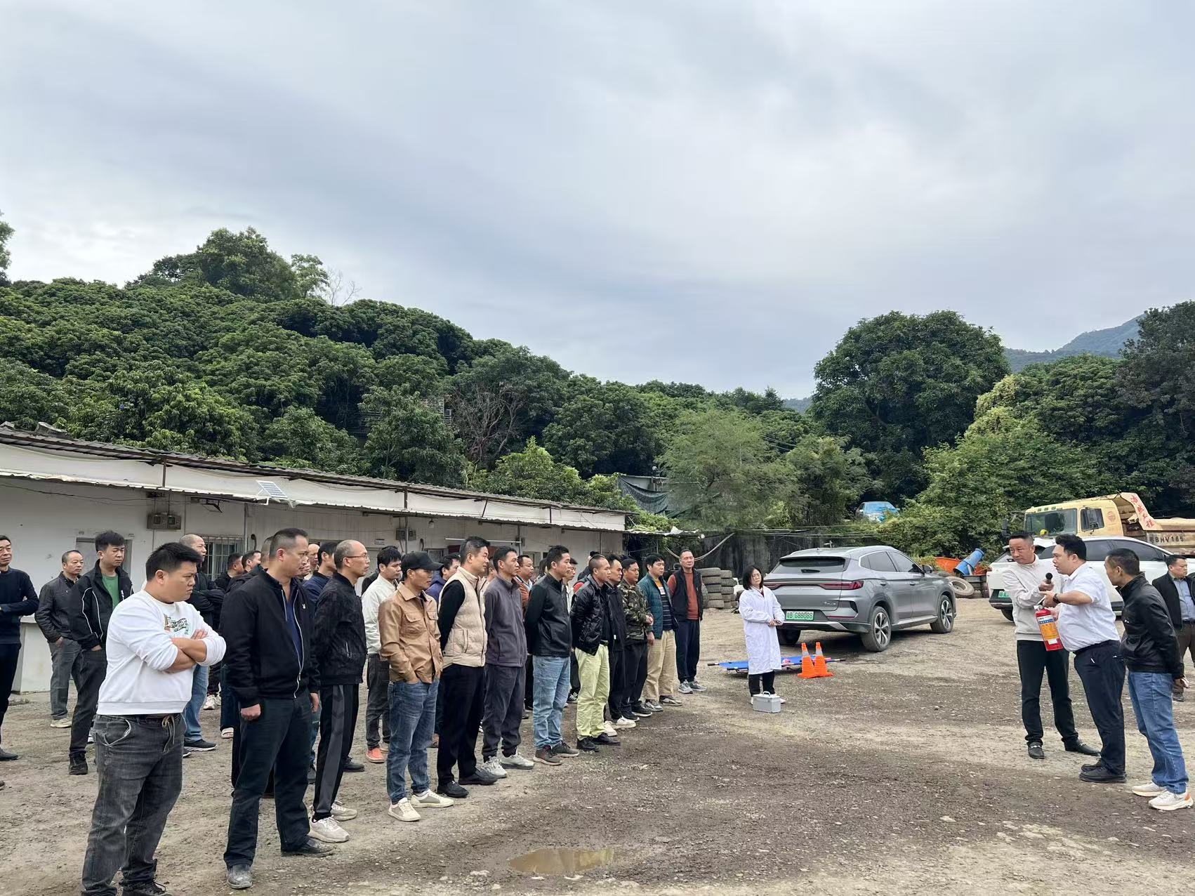2025年11月19日16点,深圳市浩然工程发展有限公司车队内上演了一场紧张有序的安全交通事故应急演练。