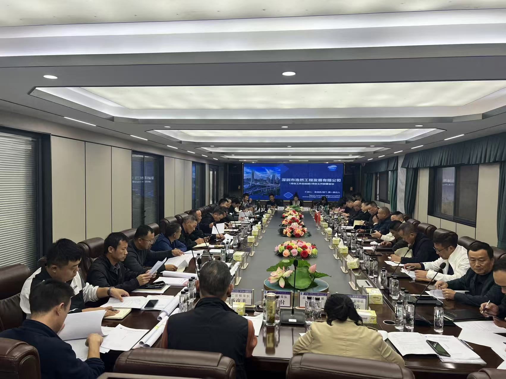 2026年1月31日下午14时,深圳市浩然工程发展有限公司组织召开了1月份工作总结暨2月份工作部署会议。会议旨在全面复盘1月份各项工作,分析形势、总结经验、查找不足,并科学规划部署2月份重点工作任务,为公司在新的一年开好局、起好步凝聚共识、汇聚力量。董事长、公司管理层、各职能部门及项目负责人出席了会议。